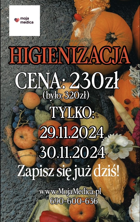 Cena regularna za higienizację to kwota 320zł . Tylko przez dwa dni to jest 29 i 30.11.2024 będziecie płacicie 230,00 zł. Wyjątkowo zapisy tylko przez rejestrację telefoniczną